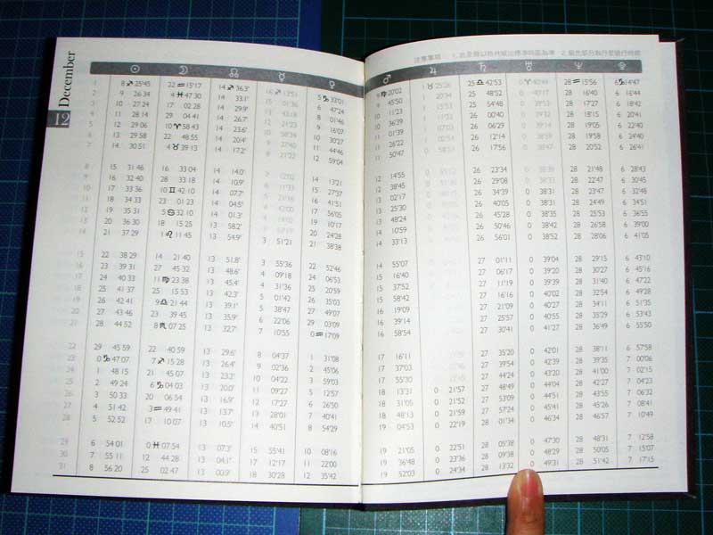 最後面有列出每天每個行星的位置