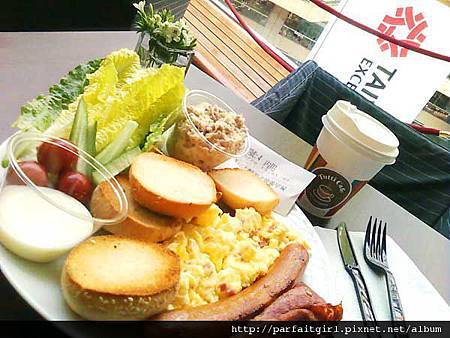 五樓圖比典藏咖啡的景觀不錯,桌椅舒適。美式早餐還不錯吃,超豐盛150元。麵包有五片吃得好飽…