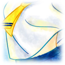造型靈感來自於《美幸夢遊仙境》,漫畫好像絕版了,如果有人願意賣給我我會感激涕零的,請留言。這是一部主角被追著一直跑,跑來跑去衣服就會一直飄動,就會看到要露不露的腰肉…總之強調水手服好萌好萌的作品。我此生也就只有看過這一部作品強調水手服的萌點=曖昧的三公分,所以就畫了。